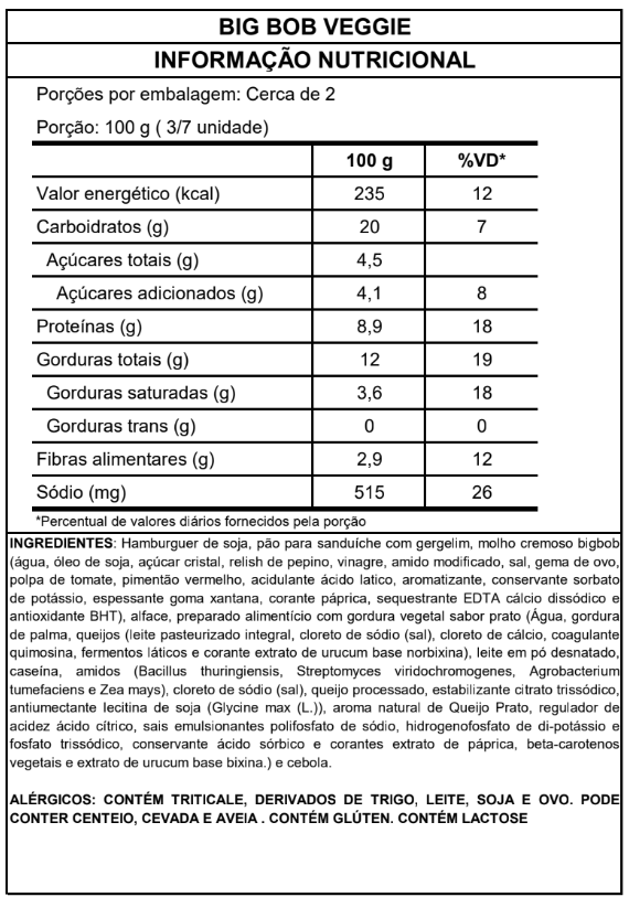 O grande clássico que só tem no Bob's agora com hambúrguer de origem 100% vegetal acompanhado de queijo, alface, cebola e molho Big Bob original, em um pão quentinho com gergelim