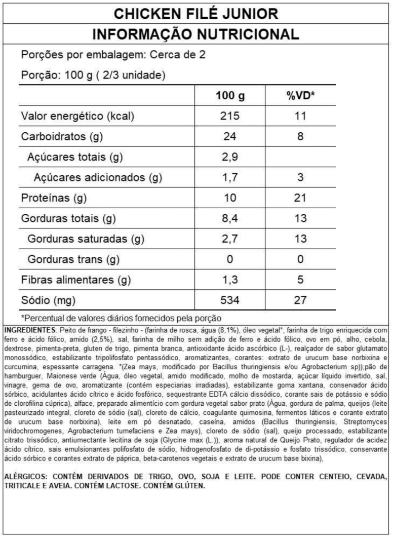 Suculenta tira de frango feita com 100% filezinho de frango, marinada com lemon pepper e empanada. Servida com deliciosa maionese verde, alface fresquinha, queijo processado sabor prato derretido em um pão quentinho.