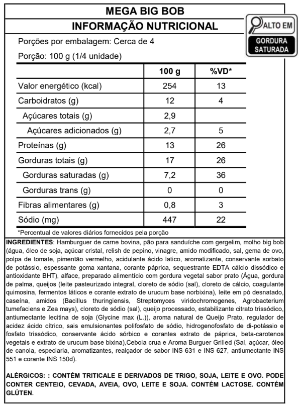 Dois hambúrgueres bovinos de 117g, queijo processado sabor prato, alface e cebola fresquinhos, o inconfundível molho Big Bob original, tudo isso em um pão quentinho com gergelim. O grande clássico que todo mundo ama!